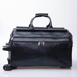 MALA GRANDE COM RODINHA DE COURO LEGÍTIMO • PRETA