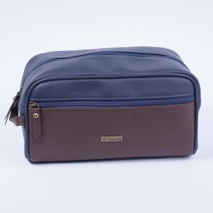 NECESSAIRE GRANDE DE COURO LEGÍTIMO • COURIBI REF AZUL-MARROM