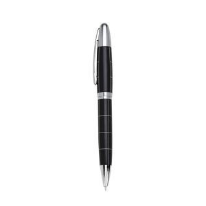 Caneta metal preta quadriculada com detalhes prata, clip meta