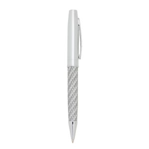 Caneta metal prata brilhante com detalhe trançado