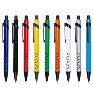 Caneta metal colorida com detalhes preto fosco