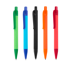 Caneta corpo em papel reciclado colorido com detalhes em plástico PLA biodegradável